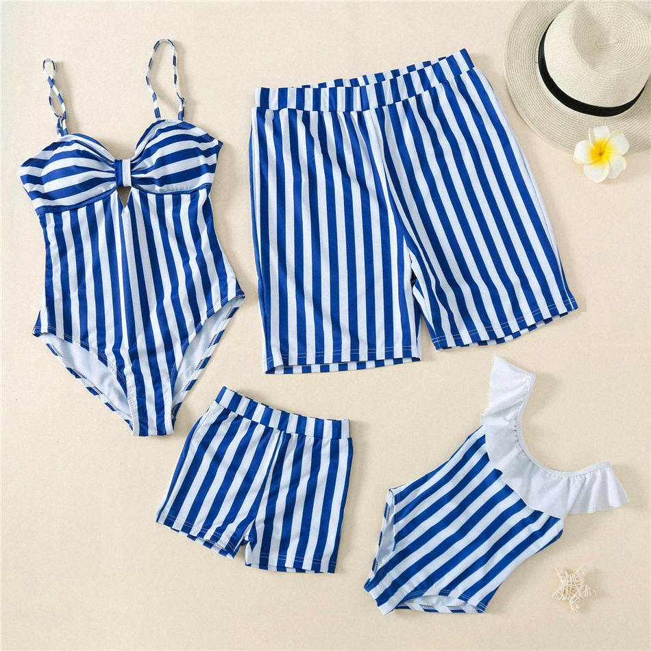 Reducido Ropa de playa a juego para Familia, madre e hija a rayas para traje de baño, Bikini para papá e hijo, bañadores de baño pBQKMe3mqpM